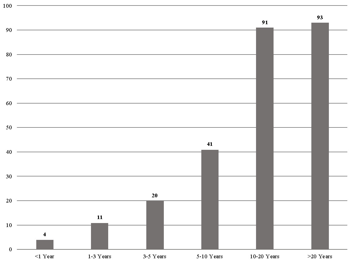 How many years of experience did you have in your primary discipline before you began writing LCPs? (n = 260)