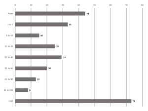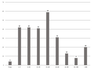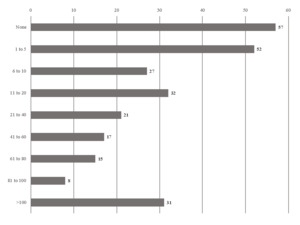 Please note: The survey results published in the Journal of Life Care Planning (2023) contained a typo which has been corrected in the tables above. The first question on page 48 of the 2023 journal article (Johnson, C. B. et al.), “For what percentage of the LCPs that you write do you e-mail providers to ask for actual fees for services? (n = 236)” should read “For what percentage of the LCPs that you write do you contact providers & vendors by telephone to ask for actual fees and prices in the evaluee’s geographic area? (n = 236)”.