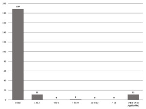 How many times were you excluded from testimony as a result of such a motion? (n = 209)